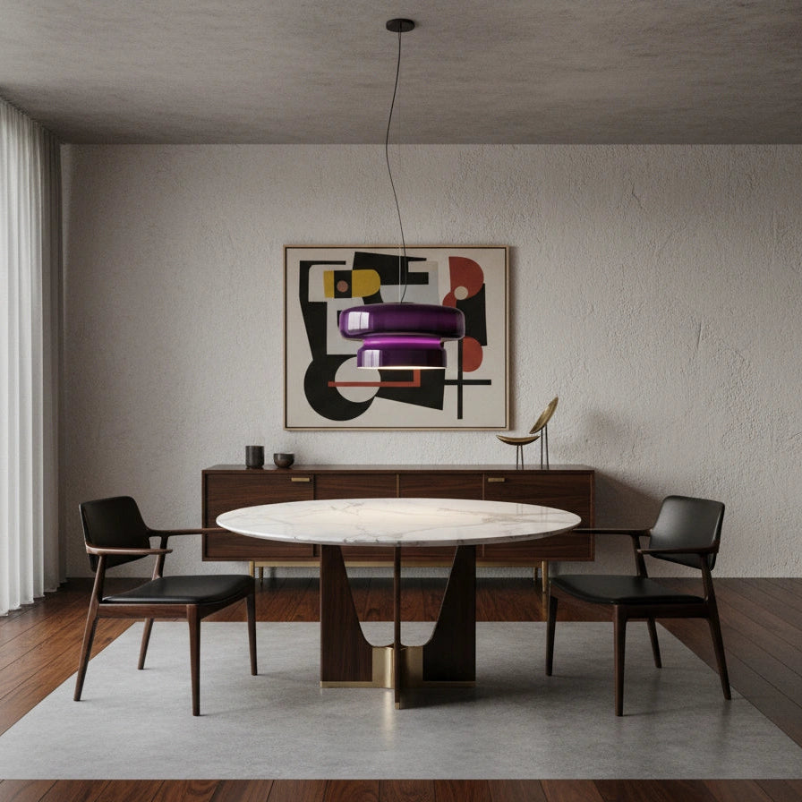 With its fluid and minimalist aesthetic, this Bauhaus pendant light blends seamlessly into both modern and classic interiors. Its diffused lighting creates a warm and sophisticated ambiance, enhancing any space with effortless style.